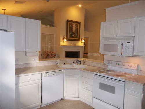 Team with white worktops and wall cabinets, so the area still feels light and spacious.