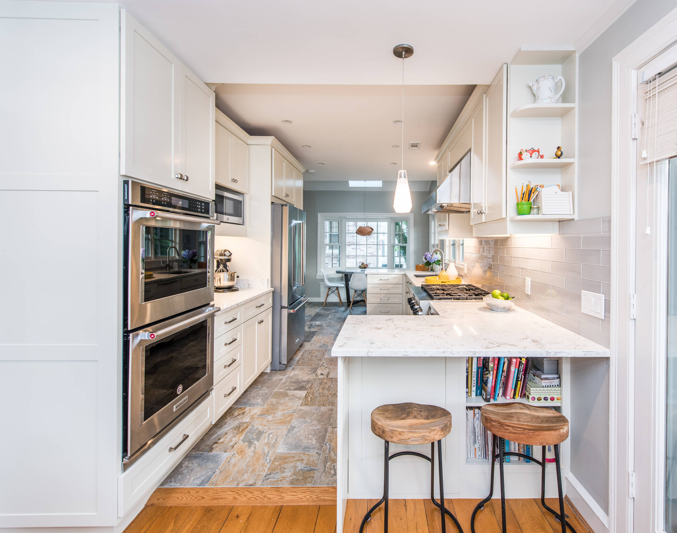 Get Slate Kitchen Floors With White Cabinets Background. White cabinetry is a classic choice for a kitchen. Make your kitchen look bigger with these ideas of kitchens with light wood floors.